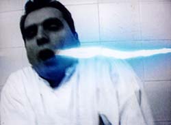 the artist, his head and body are heavily shaken and a